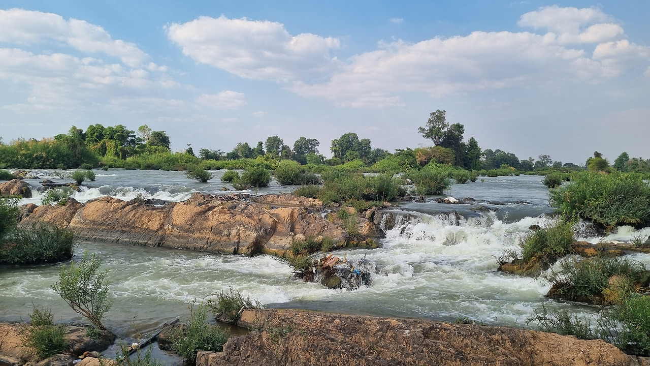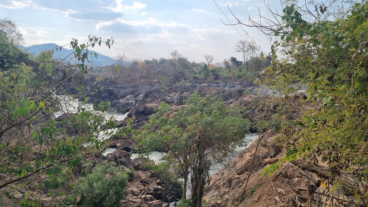 그런데 오늘의 솜파밋은 그 바위들이 모두 몸을 드러내고 있었다. 그 바위들 사이로 메콩강의 물줄기들이 기세가 꺾인 채 흘러가고 있었다. 주위의 서양인 관광객들은 그 모습에 감탄하며 연신 셔터를 누르고 있었지만, 솜파밋의 참모습을 알고 있는 내게는 너무나 서글픈 풍경이었다.