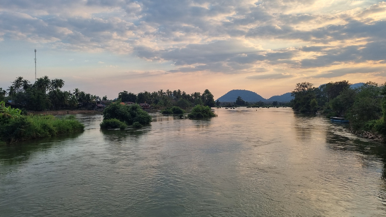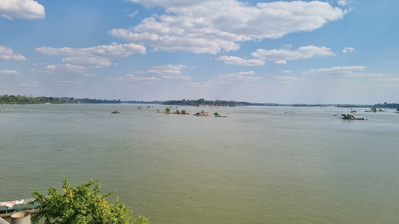 그런데 작년 그곳을 다시 찾아가 깜짝 놀랐다. 그 넓은 메콩강에 물은 전혀 보이지 않고 잡초들만이 끝없이 펼쳐지고 있었다. 바다와 같던 메콩강이 거대한 잡초밭으로 변해버린 것이었다. 물론 그 잡초 숲 아래로 물이 조금씩 흐르고 있는지는 모르겠지만, 아무튼 보이는 것은 울창한 잡초뿐이었다. 며칠 전 페이스북에서 한 사람이 그곳 사진을 올렸다. 올해도 작년과 마찬가지로 그곳에 물은 보이지 않고 끝없는 잡초밭이 펼쳐져 있을 뿐이었다. 메콩강의 물이 줄어든 것은 틀림없다. 이곳 시판돈도 내 느낌상으로는 이전에 비해 수위가 최소한 2m는 낮아진 것 같다.