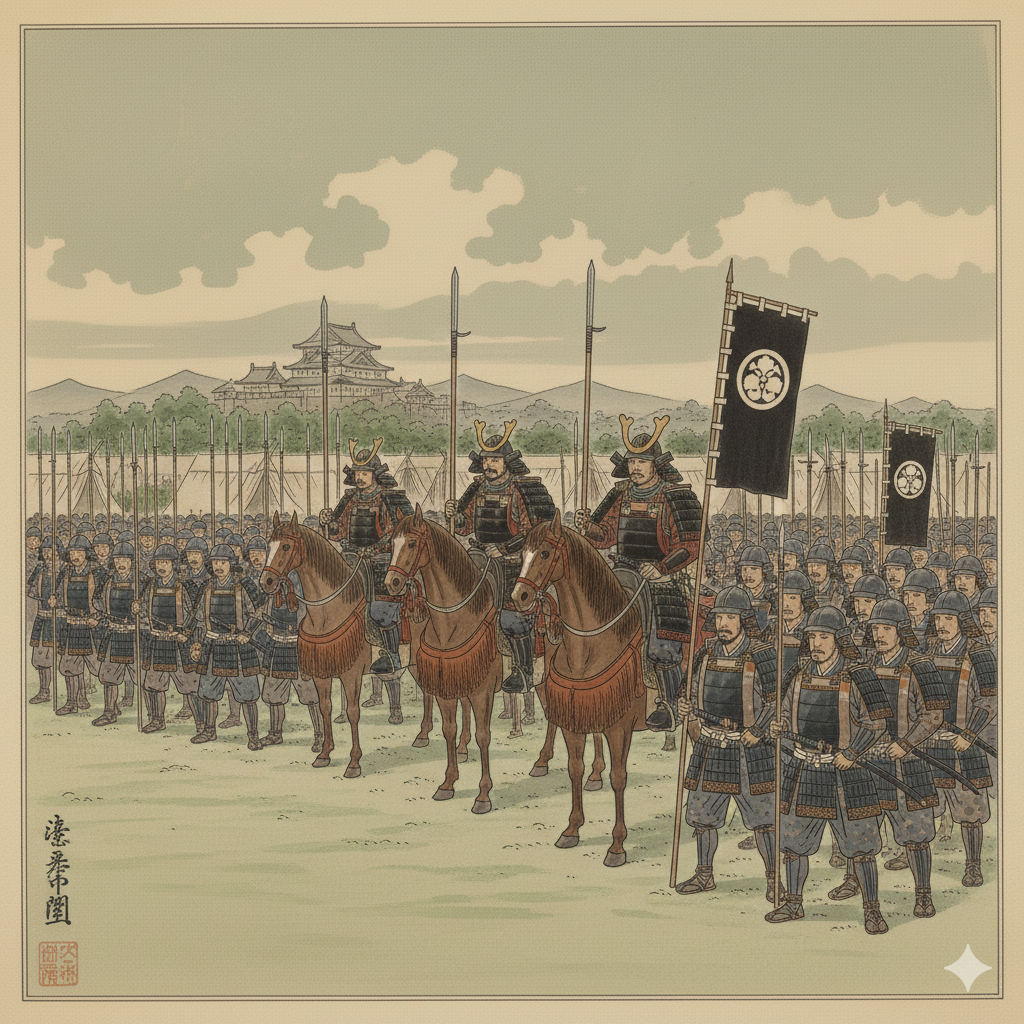 그럼 이 시기 일본의 인구는 어느 정도였을까? 학자에 따라 1,000만 명에서 1,800만 명까지 다양한 주장이 있는데, 식량 생산량에 조금 못 미치는 1,700만 명 정도라는 설이 유력하다. 그리고 총병력은 거의 50만 명에 가까웠던 것으로 추정된다. 이 시기 중국을 제외하고는 세계 최대 규모의 병력이라 할 만하다. 이 시대 명(明)나라의 병력은 서류상으로는 200만 명이 넘으나 실제로는 100만 명 이하였을 것으로 추정된다. 게다가 대부분 지역의 붙박이 병력이라 유사시 실제 동원 가능한 병력은 10만 명 미만이었을 것으로 보인다.