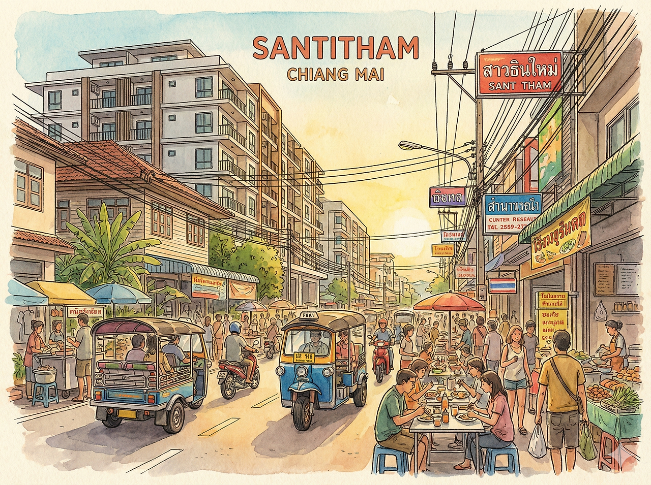 치앙마이는 성격에 따라 크게 네 구역으로 나뉜다. ① 올드타운(Old Town)해자 안쪽 구역으로, 수백 개의 사원과 전통 가옥이 밀집한 역사의 중심지이다. ② 님만해민(Nimmanhemin)은 현대적인 카페, 갤러리, 쇼핑몰이 모여 있는 '치앙마이의 가로수길'이라 불리는 세련된 동네이다. ③나이트 바자(Night Bazaar)는 핑 강(Ping River) 근처의 상업 지구로, 야시장과 다양한 호텔들이 밀집해 있다. ④ 산티탐(Santitham)현지인들의 주거 비중이 높으며 저렴한 맛집과 생활 밀착형 상점이 많은 지역이다.