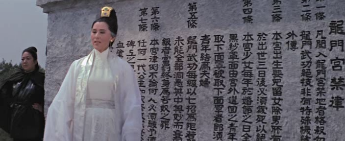 황금 복면인은 바로 백옥룡의 생모인 용문궁주였다. 그녀는 제자들을 모아놓고 남자를 배척하는 악법을 고치겠다고 선언한다. 하지만 용문궁의 율법을 바꾸려면 현 궁주의 피로 돌비석에 새겨진 글을 씻어내야만 했다. 용문궁주는 수많은 제자가 지켜보는 가운데 스스로 가슴을 찔러 그 피로 율법을 개정한다. 제자들은 궁주의 희생을 보며 흐느낀다.
