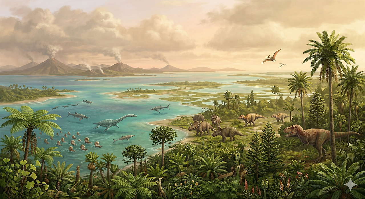 백악기(Cretaceous Period)는 중생대의 마지막 시기로, 약 1억 4,500만 년 전부터 6,600만 년 전까지 약 7,900만 년 동안 지속된 기간이다. 이 시기는 지구 역사상 가장 따뜻했던 시기 중 하나로 꼽히며, 공룡이 전성기를 누리다 대멸종을 맞이한 시대이기도 하다.