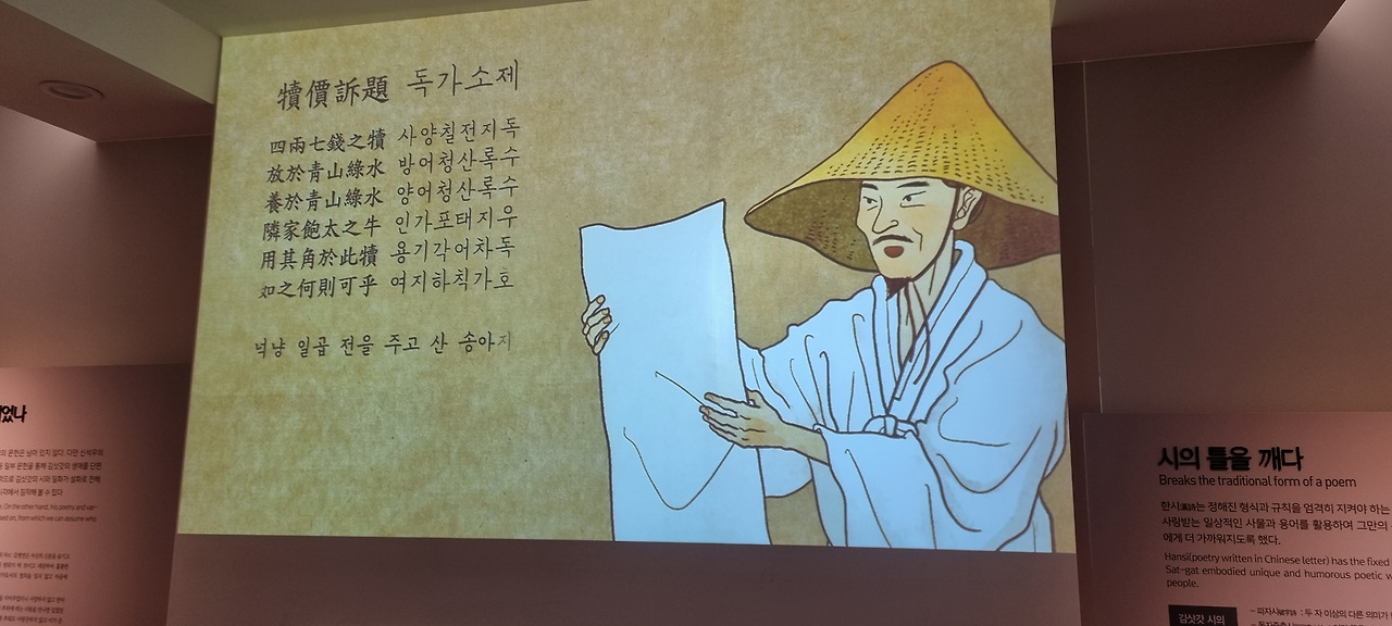이런 시들은 읽으면 통쾌한 맛이 있기 때문에 사람들은 좋아한다. 그렇지만 사람들에게는 잘 알려져 있지 않지만 자신의 인생을 노래하고 자연의 아름다움을 노래한 수많은 시들이 있다. 문학관에는 이러한 여러 시들을 여러 시각적 효과를 동원하여 잘 보여주고 있다.