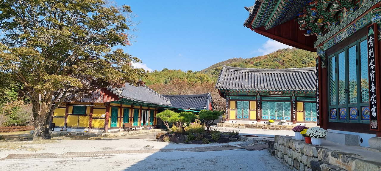 절 앞마당에는 세 그루의 인상적인 나무가 서있다. 하나는 은행나무인데 전체가 노랗게 물들어 있다. 키가 무척 커 나이가 꽤 든 나무인 것으로 보이는데, 키는 크지만 옆으로 벌어지지는 않아 좀 전에 백운사에서 본 은행나무에 비한다면 좀 못한 느낌이다. 다른 두 그루의 나무는 느티나무인데, 보통 시골 마을이나 절에서 흔히 볼 수 있는 것들과는 달리 여기는 비슷한 크기의 두 그루의 나무가 나란히 서있다. 하나하나의 나무는 그렇게까지 크다고 할 수는 없으나, 닮은 두 그루의 나무가 나란히 서있으니 마치 쌍둥이같이 보인다.