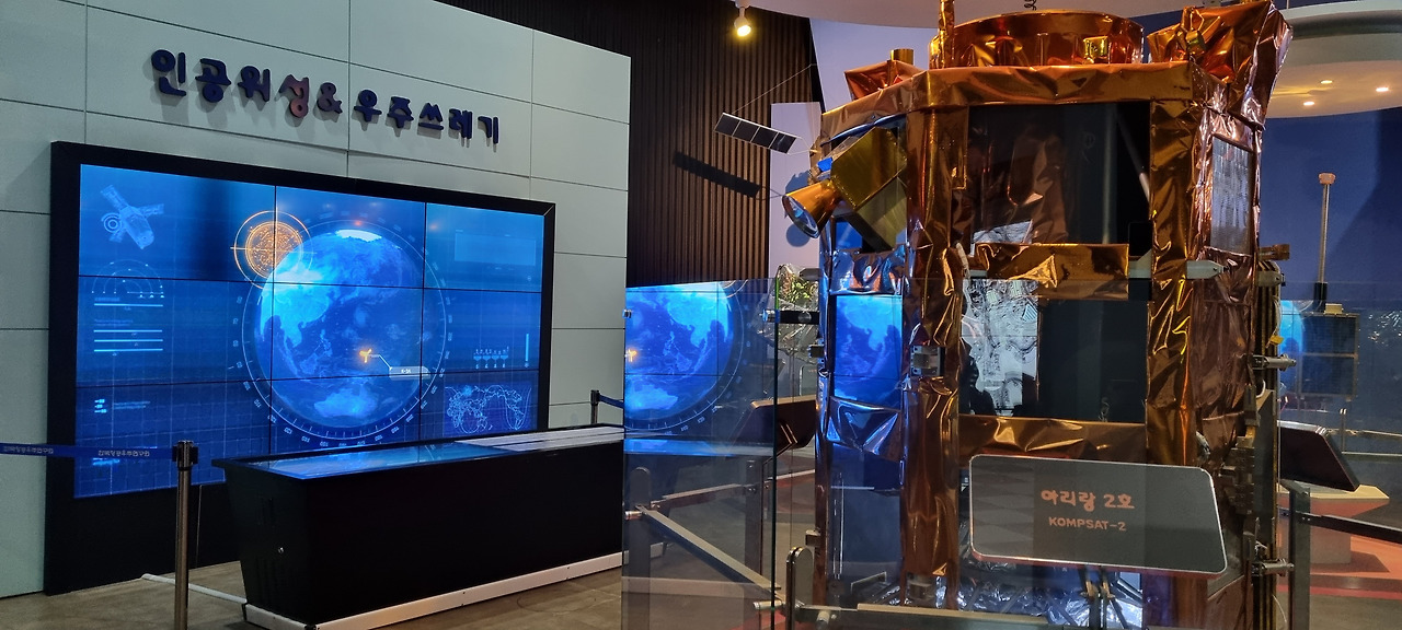 이어 전시관을 옮겨 가면 관람을 한다. 위성과 우주에 관한 전시물, 로켓을 발사하기 위한 기술, 세계의 로켓 발전사 및 우주 탐험의 역사 등 다양한 전시물이 전시되어 있다. 이와 아울러 세계 각국이 위성을 쏘아 올림으로서 초래된 우주 쓰레기 문제, 우주에서 바라본 우리나라와 세계 각국의 도시, 우리 위성이 촬영한 지구 사진, 뉴턴이나 아인슈타인 등의 과학 이론 등이 전시되어 있다.