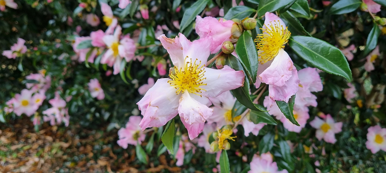 대웅전 오른쪽 뒤에 꽃이 핀 듯한 푸른 나무가 보인다. 가까이 가보니 잎 모양은 마치 동백나무를 닮았는데, 옅은 분홍색 꽃을 활짝 피우고 있다. 이 늦은 가을에 활짝 핀 꽃이라니, 무슨 꽃인지 궁금하였다. 이 나무 옆에는 안개꽃을 닮은 꽃을 피운 나무가 서있다. 마치 솜처럼 생긴 흰 꽃인데, 나무 전체가 허연 밀가루를 덮어 쓴 것 같은 모습을 하고 있다. 여하튼 늦은 가을에 활짝 핀 꽃을 보다니 무슨 행운이 따를 건가 하는 생각도 들었다. 나중에 알고보니 흰 꽃이 핀 나무는 ‘은목서’라고 하는데, 남쪽 지방에는 흔히 볼 수 있는 나무라 한다.