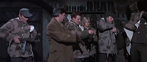 여기서 특공대원은 독일군 간부들의 파티장을 습격하여 다수의 독일군 고위간부들을 체포한다. 이때부터 독일 수비군들이 공격해오는 과정에서 독일군 고위간부들과 특공대장 스미스 소령 간의 치열한 두뇌 싸움이 벌어진다. 여전히 특공대원 중에는 누군지 모르지만 독일군 첩자가 끼여있다. 그리고 특공대가 체포한 독일 고위간부들의 진술도 어느 것이 맞고 어느 것이 틀렸는지 모른다. 이러한 허허실실의 두뇌 싸움을 거쳐 특공대는 카나비 장군을 구출한다. 그리고 그들은 케이블카로 요새를 탈출한다. 요새를 탈출하면서 벌어지는 케이블카에서의 싸움은 이 영화의 클라이맥스에 해당한다. 눈 덮인 알프스의 까마득한 고공 케이블카 위에서 벌어지는 격투 신은 이 영화의 백미라 할 것이다.