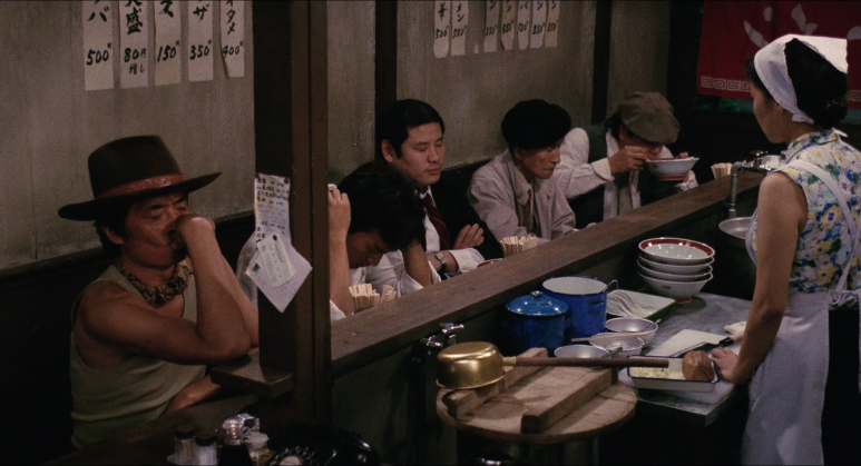 장거리 트럭 운전사인 고로와 간은 어떤 낡은 라면집에 들어가니, 여주인인 담뽀뽀가 어린 시절부터 친구인 시켄에게 집요하게 사귀자고 졸리고 있다. 고로가 곤란한 처지에 놓인 담뽀뽀를 도와주려 하면서 고로와 담뽀뽀는 가까워지게 된다. 담뽀뽀는 남편이 죽은 후 혼자서 라면집을 해서 먹고 살아가고 있는데, 고로가 담뽀뽀가 만든 라면을 먹어보니, 이건 영 맛이 아니다. 이렇게 라면 맛이 없다 보니까 라면집이 잘 될 리가 없다.