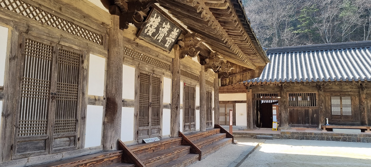대웅전과 마당을 사이에 두고 보제루(普濟樓)가 서있다. 보제루란 법요식이나 집회소로 사용되는 건물인데, 학교로 치면 강당, 회사로 치면 대회의실 정도에 해당하는 건물이라 할 것이다. 그리 오래된 건물 같지는 않으나 채색되지 않은 목재로 지어진 건물이어서 상당히 고풍스러운 맛이 난다. 오늘 꽤 걸었더니 다리가 아프다. 집사람이 불공을 드리는 동안 보제루 마루 나무계단에 앉아 지친 다리를 쉰다.