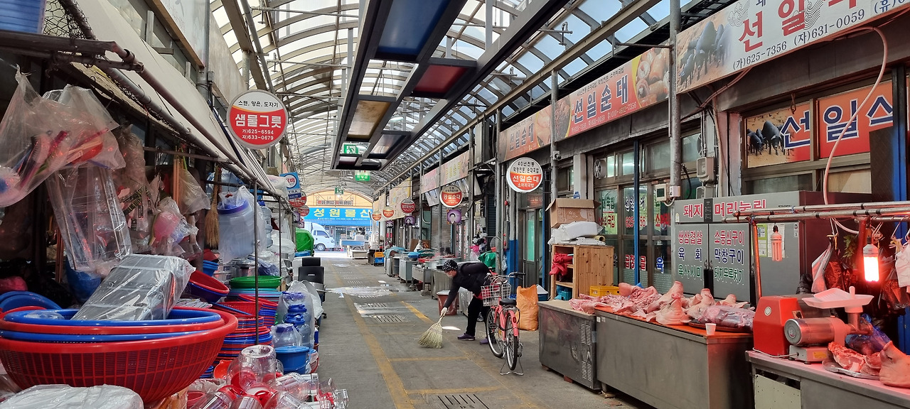 춘향골 전통시장은 규모가 꽤 큰 시장이다. 시장 바로 앞에 넓은 주차장이 있어 주차도 쉽다. 그런데 시장 안으로 들어가니 너무나 한산하다. 장보는 손님이 거의 보이지 않으며, 거의 1/3 정도의 가게는 문을 닫은 것 같다. 산나물을 팔 것 같은 가게를 찾았지만, 손님이 워낙 없는 탓인지 보이지 않는다. 오늘 이 시간이 특별히 그런지 아니면 늘 그런 상태인지는 잘 모르겠다.