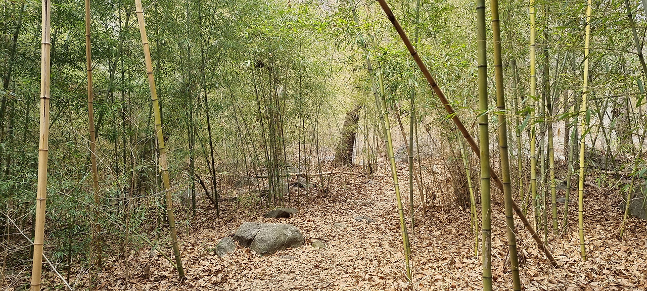 휴양관 뒤쪽 산 위에는 대나무 길이 조성되어 있다. 작은 대나무 숲 사이로 산책로가 나있어 대나무 숲을 즐길 수 있다. 대나무 숲은 그다지 넓지는 않았다. 그렇지만 그 안쪽으로 산책로가 오밀조밀하게 나있어서 면적에 비해서는 숲길을 걷는 재미가 솔솔하다. 대나무는 지름이 2-3센티 높이는 5미터 정도 되는 작은 것들이다. 몇 년 전에 담양의 죽녹원이라는 곳에 가서 굵고 키 큰 대나무 숲을 본 적이 있었으나, 우리나라는 기후가 추워서 그런지 큰 대나무 숲을 찾기는 쉽지 않다. 지름이 15센티 이상되고 키가 10-20미터나 되는 큰 대나무들이 밀집해있는 대나무 숲은 장관이지만 우리나라에서는 그런 곳을 찾기가 어려운 것 같다.