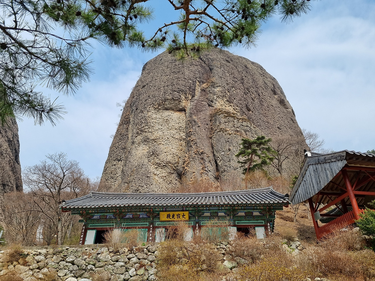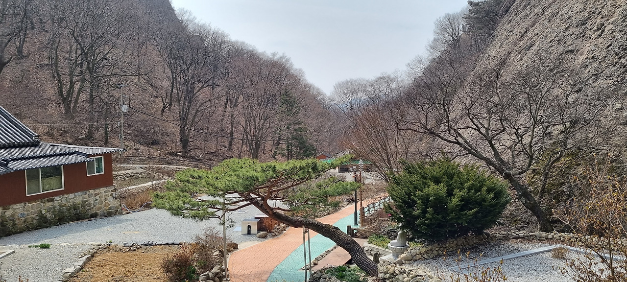 은수사로 오는 길은 상당히 가파른 길이다. 그런 가파른 길이 갑자기 끝이 나면서 평평한 평지가 나오고 그 안에 정원같이 아름답게 꾸며진 은수사가 나오는 것이다. 은수사 바로 뒤로는 숫마이봉이 은수사를 내려다보며 우뚝 서있다. 그래서 그런지 은수사는 상당히 아늑한 느낌이 든다. 정갈한 모습의 절집들이 적절히 배치되어 있고, 주위는 잘 관리된 정원수들이 절을 장식하고 있다. 아직 이름 봄이라 소나무만 푸른색을 띠고 있을 뿐 대부분 잎사귀 하나 없이 앙상하다. 그러나 며칠 뒤 나무들이 꽃을 피우기 시작하면 절의 모습은 완전히 달라질 것 같다.