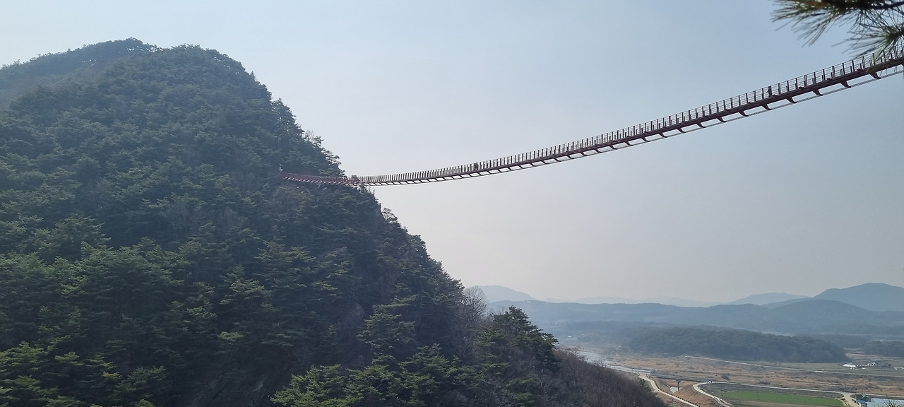 문득 이전에 읽었던 어떤 책의 내용이 생각난다. 사람이 무엇을 본다는 것은 눈이 보는 것이 아니라 뇌가 보는 것이다. 눈앞에 있는 물체에 대한 사전 정보가 뇌에 기억되어 있지 않다면 보이지 않는다. 예를 들면 옛날 콜럼버스가 아메리카 대륙을 찾았을 때 원주민들은 앞바다에 큰 배가 떠있었지만 그것이 보이지 않았다. 왜냐하면 그들의 뇌에는 ‘큰 배’라는 개념이 없었기 때문이다. 그들 눈에 배가 보인 것은 아마 며칠 뒤였을 것이다라는 내용이었다. 나도 출렁다리가 산 중턱에 걸려 있으리라 생각을 했지, 도로 위를 지난다고는 전혀 생각지 못했다. 그랬기 때문에 출렁다리가 보이지 않았던 것이 아닐까 하는 생각을 해보았다.