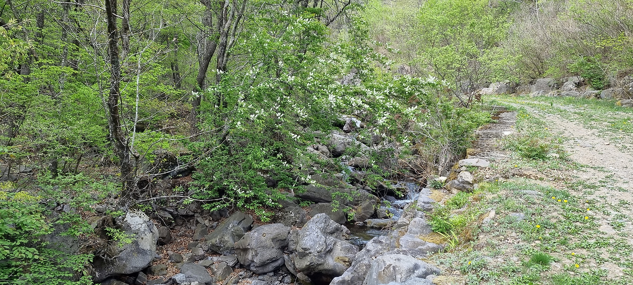 계곡 산책길 중앙과 길 가장자리에는 서양민들레가 계속 피어있다. 그리고 계곡을 따라 올라가니 산괴불주머니 역시 듬성듬성 무리를 지어 피어있다. 꽃을 많이 보지 못해 아쉽지만, 둘밖에 없기 땜에 이름을 쉽게 외울 수 있어 좋다. 조금 올라가다 보니까 계곡 바로 옆에 하얀 꽃을 피운 내 키보다 조금 큰 나무가 보인다. 아주 하얗고 예쁜 꽃이다. 또 찾아보니 ‘물푸레나무’이다. 글을 읽다 보면 어디서나 자주 나오는 물푸레 나무란 이름은 진작부터 알고 있었지만, 물푸레 나무라는 것을 알고 물푸레나무를 보는 것은 오늘이 처음이다.