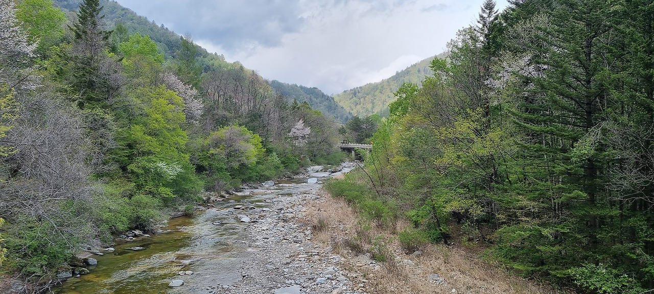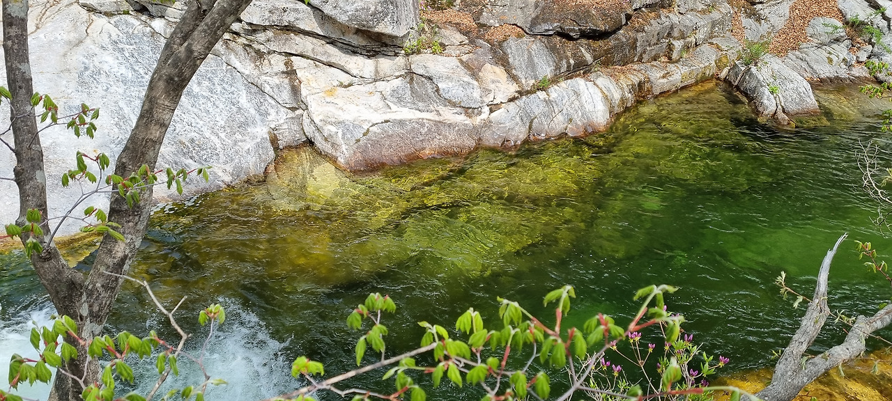 길은 거의 계곡을 따라 나있다. 구간에 따라 계곡에서 벗어나기도 하지만, 곧 바로 다시 계곡 옆으로 되돌아온다. 계곡물은 무척 풍부하다. 맑고 투명한 물들이 쉴새없이 콸콸 흘러내린다. 때로는 급하게 때로는 완만하게 물은 쉬엄없이 흘러간다. 중간중간에 넓은 소와 작은 폭포도 보이는데, 어느 곳도 맑지 않은 곳이 없다. 계곡에서 조금 떨어진 길로 들어가면 가끔씩 야생화가 보인다. ‘피나물 꽃’, ‘벼룩나물 꽃’, ‘귀롱나무 꽃’, ‘양지꽃’, ‘말발도리’ 이렇게 꽃 이름 하나하나를 알아보는 일이 더없이 즐겁다. 이렇게 즐거운 일을 왜 진작 하지 않았던가. 계곡 옆으로는 진달래같기도 하고 철쭉같기도 한 꽃들이 드문드문 군락을 이루고 있다. 찾아보니 산철쭉이다. 계곡 옆으로는 온통 산철쭉이 만개해있다.