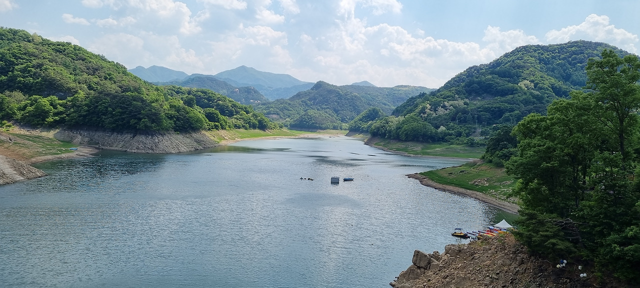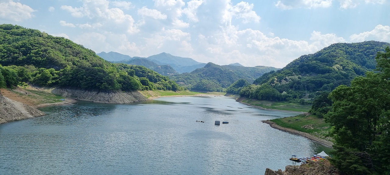 지난번 여행에서 옥순봉 출렁다리를 가려고 했으나 시간이 늦어 가지 못했다. 오늘은 시간도 충분하니 느긋하게 구경하여야겠다. 대원지를 나와 충주호 옆으로 굽이굽이 난 도로를 달린다. 충주호는 충주댐의 건설로 생긴 호수로서, 면적으로는 우리나라 호수 가운데 가장 넓다고 한다. 충주호는 넓기도 하지만 경치도 좋다.
