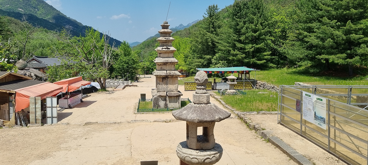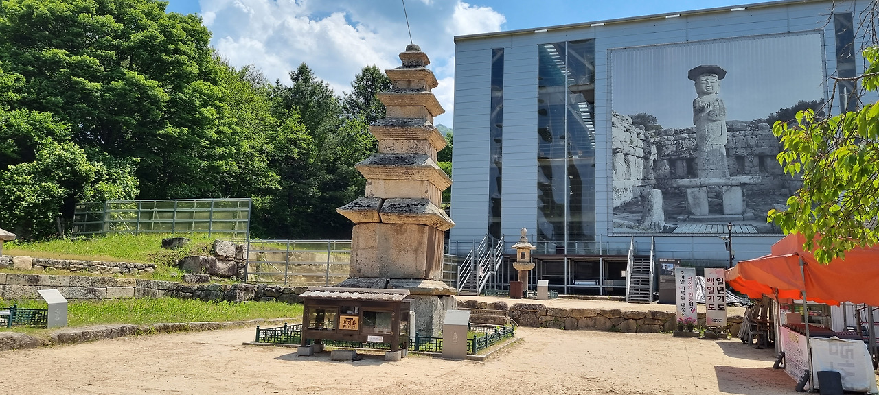 주차장에 차를 세우니 바로 옆이 대원지이다. 이곳은 옛 절터로서 가장 안쪽에 석불이 있고, 그로부터 일렬로 오층 석탑과 석등이 서 있다. 그런데 석불은 지금 복원 작업 중인지 크고 넓은 가림막이 쳐져 있어 보이지는 않는다. 대원지 입구를 들어서니 먼저 옛 절의 기둥을 떠받쳤던 석제 지주가 나온다. 이 지주는 발굴되기 전에는 동네 할머니의 장독대로 사용되었다고 한다. 문화재를 소홀히 다루었다는 비판이 있을 수 있겠으나, 그래도 장독대로 이용되는 바람에 그나마 지금까지 남아 있을 거라는 생각도 해본다.