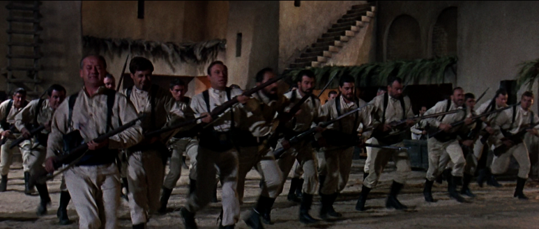 회교도들과 싸우기 위해서는 누군가가 부대를 지휘하여야 하기 때문에 부대원들은 어쩔 수 없이 전투 지휘 경험이 풍부한 디지노 상사에게 지휘를 맡긴다. 디지노 상사의 지휘 하에 외인부대는 겨우 회교도들을 물리친다. 그렇지만 외인부대의 피해도 막심하여 디지노 상사와 보 게스티 형제만이 살아남는다. 그런데 디지노 상사는 보 게스티의 동생 존 게스티마저 죽인다. 분노를 참지 못한 보게스티는 디지노 상사를 죽이고, 홀로 부상당한 몸으로 요새에 남겨진 상황에서 교대부대가 도착한 것이다.