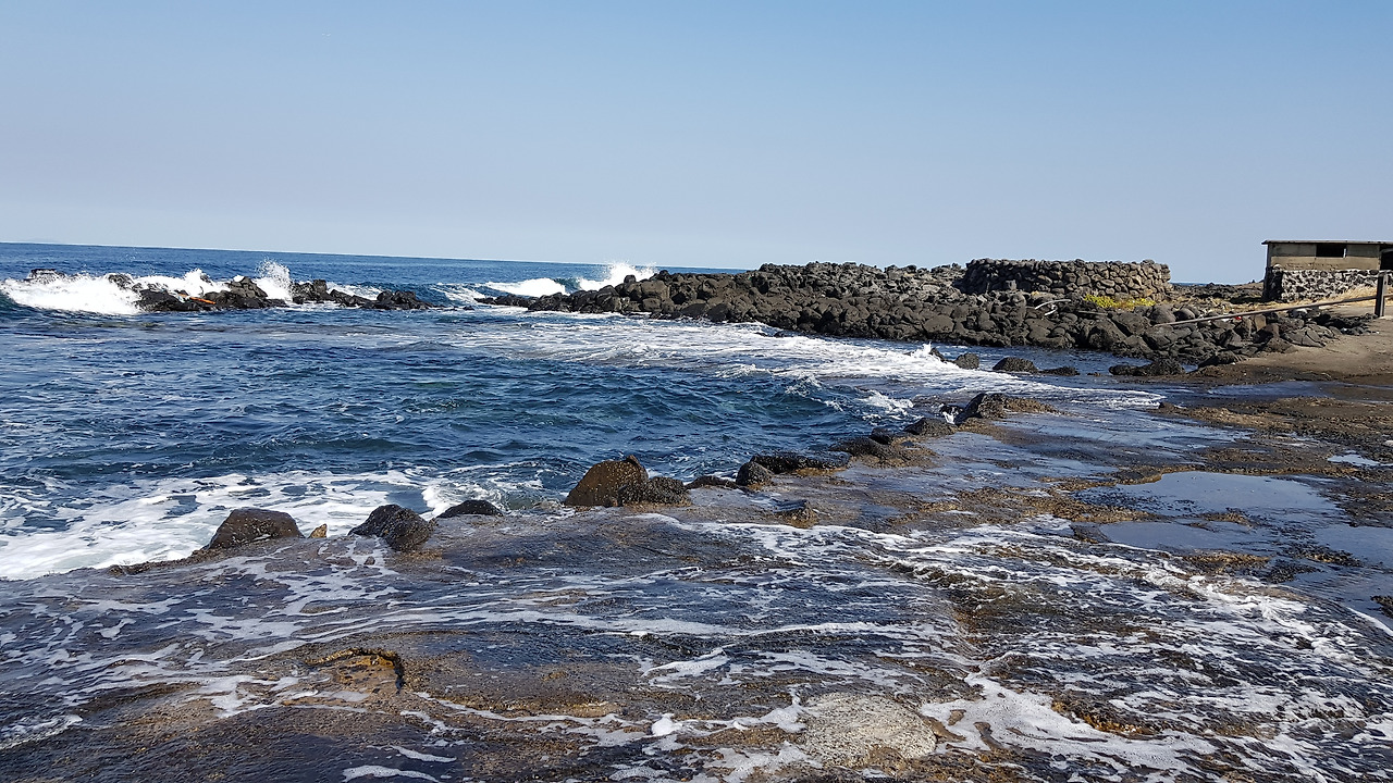 바다 옆으로 나 있는 섬 일주도로를 따라 경치를 즐기며 섬을 일주한다. 멀리서 볼 때는 지극히 평범한 섬으로 보였는데, 의외로 볼 것이 많다. 섬 가장자리가 절벽으로 된 섬과는 달리 도로가 바로 바다에 접해있어 바다에 바로 내려가 볼 수도 있어 매우 친수적(親水的)인 환경이다. 작은 섬이라 길이 단순하다고 생각해서 그런지 도로 안내판이 거의 없다. 몇 번이나 길을 잘못 들었다. 섬을 일주하니 그럭저럭 2시간 반 정도 걸렸다.
