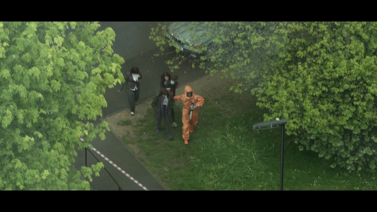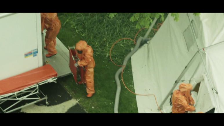 어느 날 예술가인 마크는 아침에 집을 나가려고 하는데, 문이 열리지 않는다. 문은 물론 창문까지도 완전히 봉쇄되어 그는 자신이 완전히 아파트에 갇혀 있다는 사실을 알게 된다. 무슨 일인가 전화를 해보려 하지만 전화도 이미 끊어져 있고, 핸드폰 통화도 불가능하다. 옆 집 할머니의 신호로 밖을 내다보니 밖에는 큰 방역 텐트가 쳐져 있고, 방호복으로 중무장한 사람들이 바삐 움직이고 있었다. 그리고 방호복을 입은 사람들은 아파트 주민인듯한 사람을 마치 체포한 것처럼 텐트 안으로 데려가는데, 그가 자신을 데려가는 사람을 뿌리치고 도망가자 방역팀은 총으로 그를 사살해버린다.