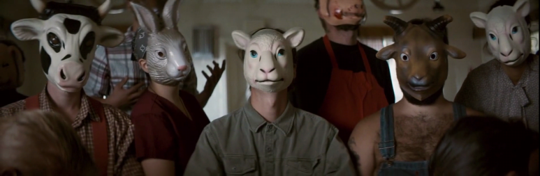 아침이 되어 일어나자 그들은 누군가에 의해 납치되었다는 것을 알게 된다. 여자는 작은 철창에 갇혀있고, 남자는 보이지 않는다. 이때 동물의 탈을 쓴 인간이 나타나 여자를 어디론가 데리고 간다. 여기서 이 영화에 대해 결정적으로 중요한 의문이 떠오르는데, 이 동물의 탈을 쓴 인간이 그냥 보이는 그대로 동물 탈을 쓴 범죄자들인지, 아니면 동물을 표현하는 것인지 알 수가 없다. 영화의 내용으로 보자면 동물을 표현한 것으로 보이는데, 그렇다고 한다면 영화가 너무 유치하다. 아무런 분장 없이 탈 바가지 하나 달랑 씌워놓고, 그것을 인간을 사육하는 동물이라 하니 요즘같이 영화기술이 발전한 시대에 너무 무책임하다.