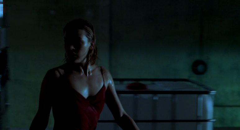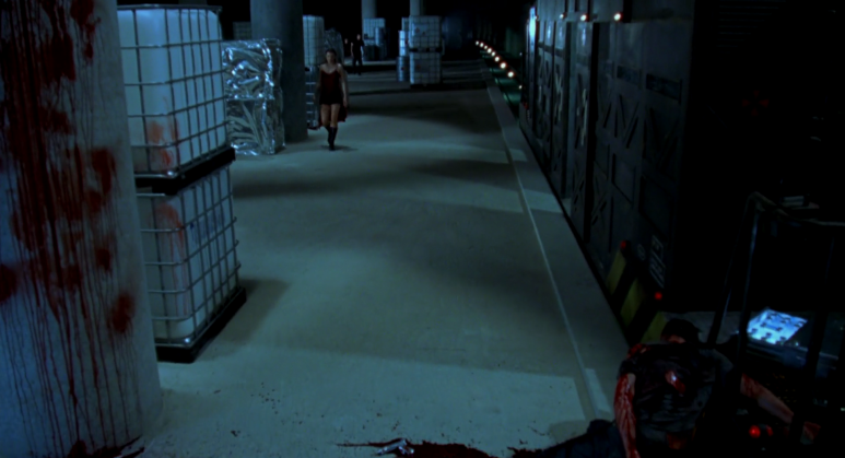 구역을 빠져나온 앨리스는 연구원 복장을 한 여자를 만난다. 그런데 이 여자가 어딘가 이상하다. 이 여자는 바이러스에 감염되어 좀비로 변한 것이다. 이때부터 죽은 것으로 알았던 연구소 직원들이 모두 좀비로 변하여 앨리스 일행을 공격한다. 좀비에게 물리면 바이러스에 감염되어 좀비로 변하게 된다.