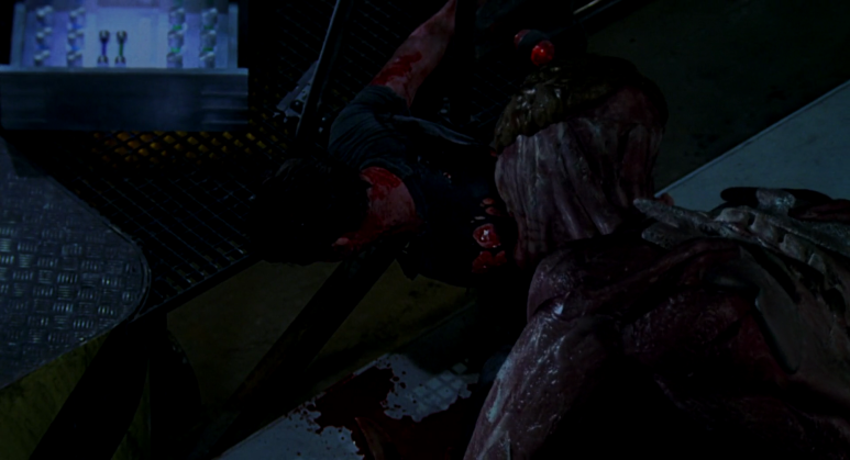 레드퀸의 본체가 있는 지하 맨 아래층에 도달한 일행은 레드퀸을 방어하는 방벽 문을 뚫으나 곧 방위 시스템이 작동하여 통로에 침입한 완 대장을 포함한 5명의 대원이 레이저 트랩에 의해 전멸당한다. 남은 플랜과 앨리스는 통로를 빠져나와 레드 퀸의 중심에 접근한다. 레드퀸은 제작자의 딸을 닮은 홀로 그래프를 통하여 침입자들이 전원 죽을 것이라고 경고한다. 그렇지만 앨리스는 레드퀸을 셧다운 시킨다. 이에 따라 일시적으로 하이브는 전기가 모두 꺼지고 봉쇄되었던 방어벽도 해제된다.