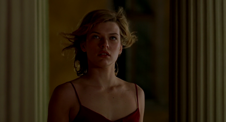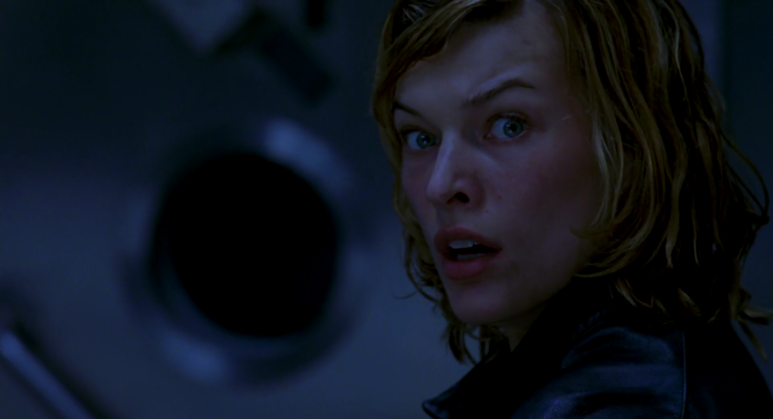 <레지던트 이블> 시리즈의 첫 편인 <레지던트 이블>은 2002년 미국, 영국, 독일의 합작으로 제작되었다. 미국 라쿤 시티 교외에 위치한 거대 다국적 바이오 기업인 엄브렐라사가 소유한 거대한 지하 연구시설인 하이브에서 개발 도중에 있던 바이러스 병기 “T 바이러스”가 누출되었다. 공조시설을 통해 연구소 직원 전원이 바이러스에 감염 되었기 때문에 하이브의 메인 컴퓨터인 <레드 퀸>은 외부로 바이러스가 누출하는 것을 방지하기 위해 연구소 내의 각 구역을 전면 봉쇄하고 소화전으로 배치하였던 핼론 가스와 스프링 쿨러의 물을 대량으로 살포하여 500명이 넘는 연구소 직원 전부를 죽게 하여 바이러스를 연구소 밖으로 누출되지 않게 하였다. 이 사태를 알게 된 엄브렐라 사는 회사에 속한 특수부대를 연구소로 파견하였다.