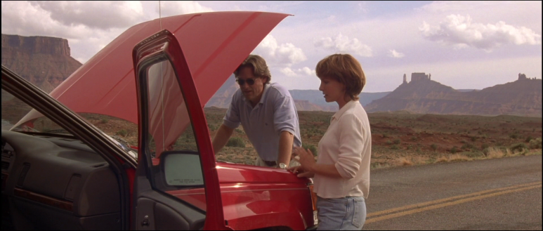 미국은 워낙 광활한 국토를 가진 나라이다 보니 가도 가도 끝도 없이 나있는 도로도 적지 않다. 우리나라라면 어떤 도로를 가더라도 차들이 복잡하게 달리지만, 미국은 한 시간에 몇 대 정도 정말 가물에 콩 나듯이 그런 빈도로 차들이 다니는 한적한 도로가 적지 않다. 자연히 그러한 도로에서는 범죄가 발생하기도 쉽다. 미국 영화들을 보면 한적한 도로 위에서 벌어지는 범죄를 소재로 한 영화가 적지 않은데, 영화 <브레이크다운>(Breakdown)도 도로 위의 범죄를 소재로 한 것으로서 1997년에 제작되었다.