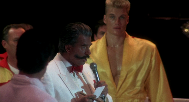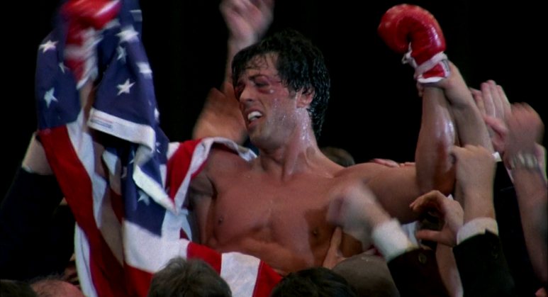 이러한 록키의 투혼에 소련 관중들도 감동을 받는다. 지금까지 일방적으로 드리고를 응원하던 관중들이 록키의 이름을 외친다. 드리고를 체제 선전으로 이용하려 하였던 소련 관리들은 당황하기 시작한다. 마침내 관중들의 열광 같은 응원을 받으며 록키는 드리고를 KO 시킨다. 경기장 안은 록키의 이름을 외치는 관중들의 함성으로 가득 찬다. 체제의 우위를 결정적으로 상징하는 장면이다.