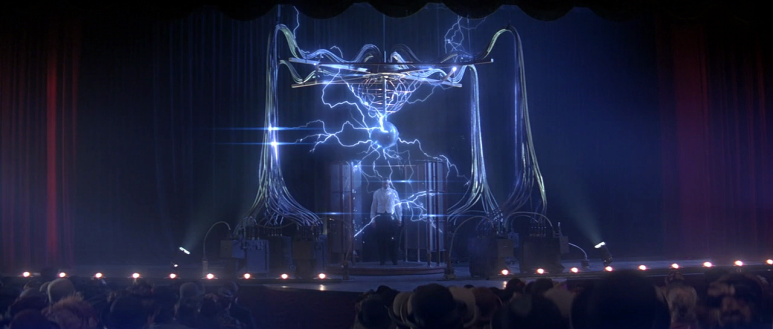 그 비법을 알아내려 하지만, 올리비아는 오히려 보든과 사랑에 빠져버린다. 엔지어는 보든의 조수 팔론을 납치하여 그의 목숨을 대가로 보든에게 순간이동 마술의 비밀을 알려달라고 한다. 보든은 어쩔 수 없이 그 비법은 미국의 과학자 테슬라에게 있다는 사실을 알려준다. 엔지어는 테슬라를 만나기 위해 미국으로 떠난다.