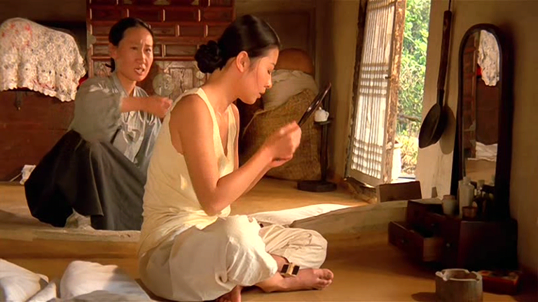 함께 몰려와 자신을 때리는 아낙들을 향해 안협댁은 내가 마을 남자들을 상대한 것이 왜 나만 잘못한 것이냐고 되묻는다. 남자들이 내게 달려들어 그런 것이며, 남자들도 다 같은 잘못인데, 왜 나만 갖고 그러냐는 것이다. 그 말에는 아낙들도 할 말이 없다. 분이 풀린 아낙들이 돌아가고, 난장판이 된 집안에서 여기저기 맞아 상처 투성이가 된 몸으로 안협댁은 엄마를 부르며 서럽게 운다. 어려서 찢어지게 가난한 집안에서 굶고 있는 동생에게 먹이려고 참외 서리를 하다가 참외밭주인에게 참외 한 알에 몸을 허락한 것에서부터 집에 입을 덜기 위해 팔리다시피 노름꾼 삼보에게 시집온 기억들이 주마등같이 스쳐간다. 이 장면에서는 정말 마음이 짠하다.