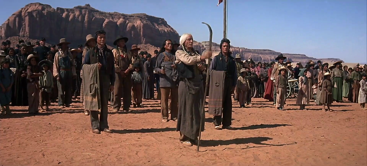 여하튼 전장에서는 미군에다가 마을의 어중이떠중이까지 다 모인 백인 군대와 샤이언 족이 대치하고 있다. 일촉즉발의 위기이다. 곧 대규모 전투가 벌어질 상황이다. 이 긴박한 순간 전투를 중지하고 샤이언 족을 고향으로 가도록 하라는 국방장관의 명령서가 전달된다. 이로서 위험은 끝나고 백인과 샤이언 족 간의 평화는 유지되었다. 그리고 데보라는 밝은 표정으로 돌아온 인디언 아이들과 즐겁게 돌아오고, 곧 아처 대위와 결혼식을 올릴 것이다.