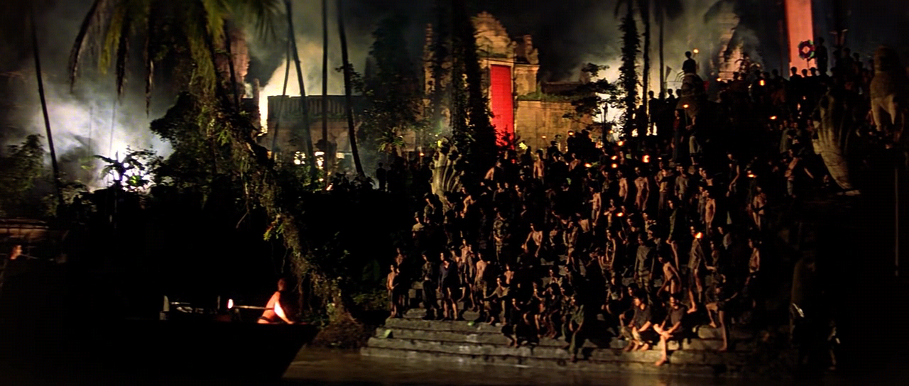 윌러드가 탄 배는 어느덧 넌 강의 상류에 진입하였다. 윌러드 일행은 갑자기 기괴한 모습을 한 사람들로부터 습격을 받는다. 부하들은 대항해 싸우려고 하였지만, 상대의 숫자가 너무 많아 윌러드는 부하들에게 저항을 포기하도록 한다. 윌러드와 그 부하들은 정글 속으로 끌려간다. 그곳은 커츠 대령이 지배하는 왕국이었다. 마을 곳곳에는 죽은 시체가 널려 있고, 사람들은 사교의 광신자들과 같은 행동을 하고 있다.