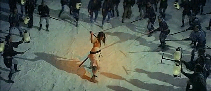 다이몬으로서도 이제 더 이상 시노는 쓸모가 없는 존재가 되었다. 오히려 그의 뛰어난 칼 솜씨가 자신에게 위협이 될 수도 있다고 느꼈다. 그래서 다이몬은 시노를 제거하려 한다. 다이몬은 시노에게 아편을 제공한다. 아편 중독이 되어 몽롱한 상태에서 매일매일을 보내던 시노는 모든 음모를 알게 된다. 시노는 몽롱한 상태에서도 칼을 잡고 나서서, 망팔자와 사창가 패거리들을 차례차례로 베어나간다. 내리는 눈이 피로 물들어 가는 속에서도 시노는 무작정 칼을 휘두르며 나아간다.