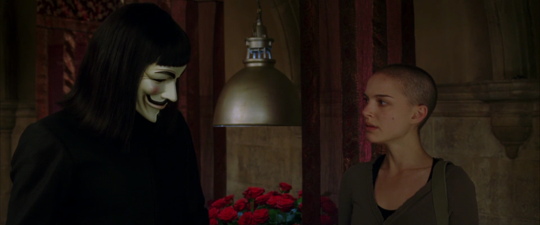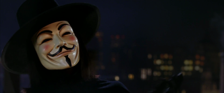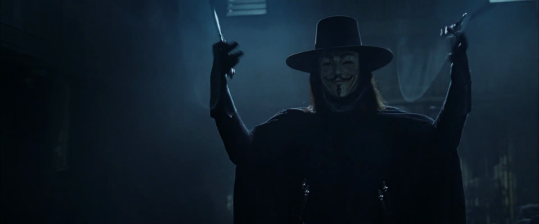 이러한 상황에서 언제부터인가 영국 곳곳에서 테러 사건이 발생하며, 그 대상은 정부기관 및 요인이다. 범인은 가이 포크스의 가면을 쓴 ‘V’라는 인물이다. 그의 본명은 아무도 모르며, 그가 테러를 가한 사건 현장에 V라는 표시를 남겨두고 가기 때문에 붙여진 이름이다. 가이 포크스란 1965년 영국 국회의사당인 웨스트민스터 궁 지하에 화약을 설치하여 테러를 시도하였던 인물이다.