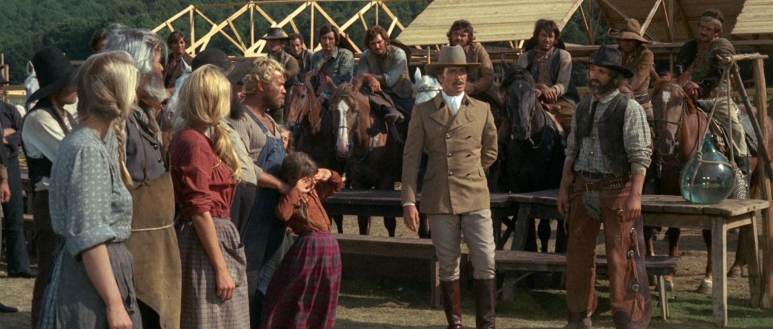 이 마을에는 선량한 주민들을 등치는 마을 권력자와 그가 고용한 똘마니들이 기승을 부리고 있다. 그런데 마을 인근으로 몰몬 교도들이 정착하려 무리를 지어 이동해온다. 마을 권력자는 이들 몰몬 교도들이 자신의 사업에 방해가 된다고 생각하여 쫓아내려 한다. 그래서 똘마니들을 보내 이들에게 행패를 부리게 하는데, 비폭력주의자들은 몰몬 교도는 이들의 행패에 속수무책이다. 몰몬 교도들이 똘마니들에게 일방적으로 당하고 있는 상황에서 우연히 튜니티와 밤비노가 이 일에 끼어들어 똘마니들을 혼내 쫓아낸다. 이 일로 몰몬 교도들은 튜니티뫄 밤비노를 자신들의 은인으로 생각한다.
