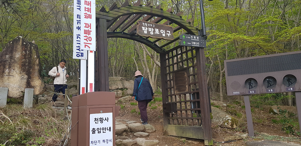 월출산에 입산하는 길은 몇 곳이 있는데, 이 곳은 <천황사>(天皇寺) 코스이다. 월출산은 소백산맥의 끝자락에 해당하는 산으로서, 높이는 약 800미터로, 넓이나 높이 어느 쪽을 보더라도 큰 산은 아니다. 대신 산이 기암괴석으로 이루어져 매우 아름답다. 아기자기한 재미가 있는 산이다. 달이 뜰 무렵 가장 아름답다고 하는데, 시간상 그때까지는 기다릴 수 없다. 갈 길이 멀기 때문에 천황사까지만 갔다 오기로 했다.