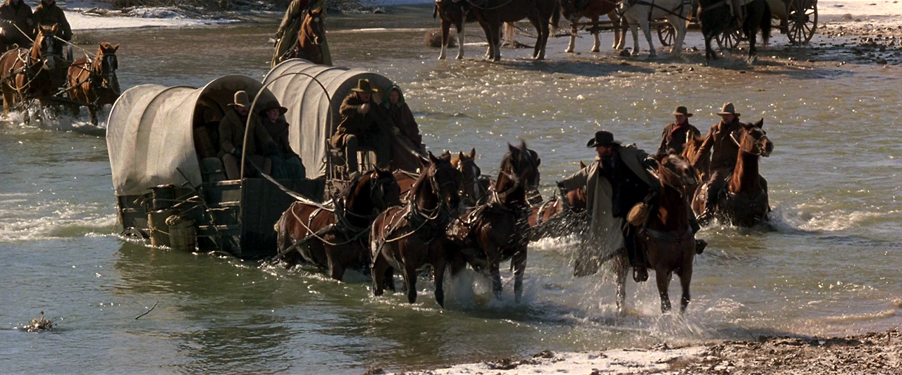 그들 네 사람은 황무지에 마차가 세워져 있는 것을 발견한다. 가까이 가보니 그들은 서부로 이주하는 가족들로서, 무법자들에게 돈을 강탈당하였다고 한다. 가족 중에 한나라는 여자는 강도들에게 남편도 살해당하였다고 한다. 일행은 무법자들을 쫓아 돈을 회수하고, 그 돈을 다시 한나에게 돌려준다.