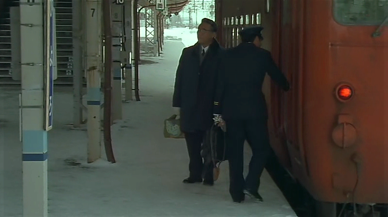 큰 눈이 내린 어느 날 저녁, 오토마츠는 마지막 열차를 점검하면서 객실에서 작은 인형을 하나 발견한다. 조금 눈에 익은 듯한 인형이다. 오토마츠는 손님이 잊고 내린 물건이라 생각하고 역사 안에 인형을 가져다 놓는다. 날이 어두워지자 초등학교 1학년쯤 되어 보이는 소녀가 인형을 찾으러 온다. 오토마츠가 인형을 돌려주자 기쁜 얼굴로 돌아간다. 그런데 소녀의 얼굴이 어딘가 눈에 익은 것 같다.