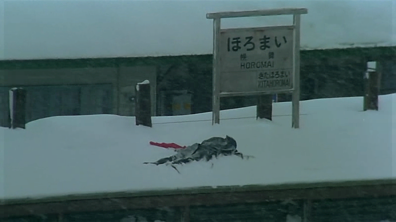 다음날 아침 기차 승무원이 역의 홈에서 차갑게 된 오토마츠의 유해가 눈 속에 묻혀 있는 것을 발견한다.