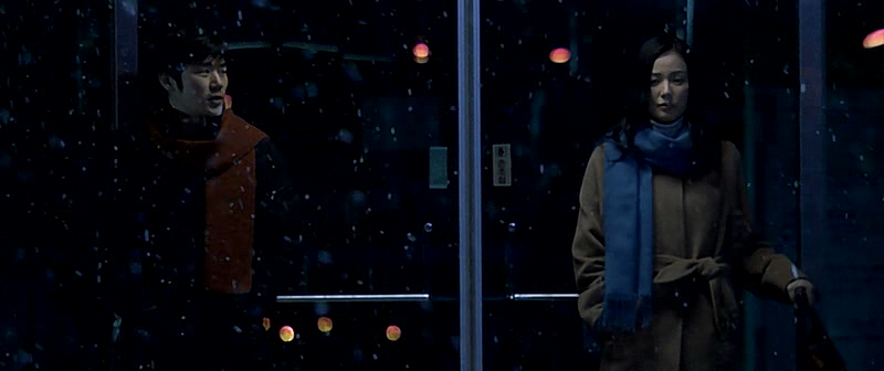 경의선 기차를 타고 가던 만수는 잠시 동안 존다. 잠이 깨니 차는 이미 문산을 지나 종점에 도착해 있었다. 황급히 기차를 내리니 역시 경의선 기차에서 졸다가 내릴 곳을 놓친 한나가 내린다. 폭설이 내려 종점 주위는 온통 눈이다. 이들이 타고 온 기차는 막차라 이제 돌아갈 수가 없다. 가까운 곳에서 하룻밤 묵으려고 택시를 부르지만, 심한 폭설로 택시도 오지 않는다. 어쩔 수 없이 두 사람은 역을 빠져나와 마을 쪽으로 걷는다.