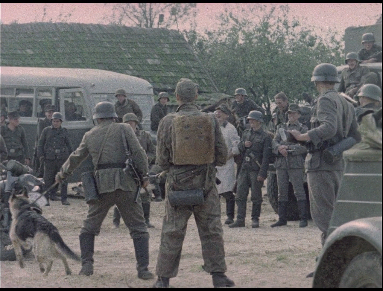 그러나 그 직후 독일군은 파르티잔의 기습을 받아 차례차례 쓰러져 간다. 프료라의 앞에 피리를 입에 문 피투성이의 그라샤가 넋이 나간 것처럼 서있다. 독일군 장교와 러시아인 협력자들은 모두 파르티잔에게 체포되었다. 나이 든 독일군 지휘자와 러시아인 협력자는 자신들은 학살에 가담하지 않았다고 변명한다. 반면 잔인하기 짝이 없었던 친위대 장교는 파르티잔을 향해 소련인들은 열등 인종이며, 그들을 죽인 것은 정당하며, 공산주의자를 죽인 것은 당당한 일이라는 궤변을 늘어놓는다. 복수에 불타는 파르티잔들은 그들을 모조리 사살해버린다.