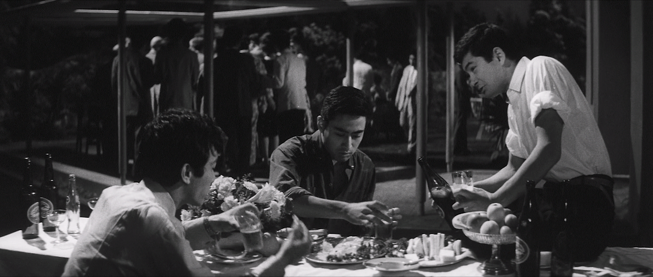 이쿠코를 억지로 차에 태운 후, 쥰과 모리시타는 그녀가 은행에서 찾아온 돈을 빼앗는다. 그러나 얼마 후 토시오는 “장난은 그만 됐다”라면서 친구들에게 돈을 돌려주라고 명령한다. 이쿠코는 “대학에까지 다니면서 참 변변찮은 인간들이네”라는 말을 남기고는 차에서 내린다. 부르주아의 아들인 토시오와 후지에는 도둑질하는 것에 쾌감을 느끼며, 모리시타는 그 돈에 유혹을 느끼며, 쥰은 아무것에도 흥미를 느끼지 못한다.