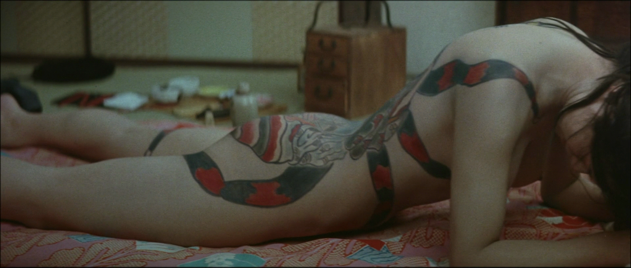 때는 1890년 무렵 나가사키(長崎)의 한 유곽에서 이야기가 시작된다. ‘오이란’이라 불리면서 아게하 타유(揚羽太夫)와 최고 인기를 다쿠고 있는 아야메 타유(菖蒲太夫)는 춘화(春畫)를 팔고 있는 청년 키스케(喜助)와 사랑에 빠졌다. 여기서 타유(太夫)란 유녀 가운데 최고의 지위로서, 자세한 설명은 위의 링크들을 참고하기 바란다. 어느 날 밤 피부가 아름다운 여자를 찾아 유곽에 온 문신사 신키치(清吉)는 자신을 상대한 유녀 미요노(美代野)에게 반해 마취약으로 그녀를 실신시킨 후 그녀의 전신에 거미 문신을 새겨 넣는다. 이 문신이 큰 인기를 얻어 미요노는 지옥 타유(地獄太夫)라는 이름을 얻은 오이란으로 출세한다.