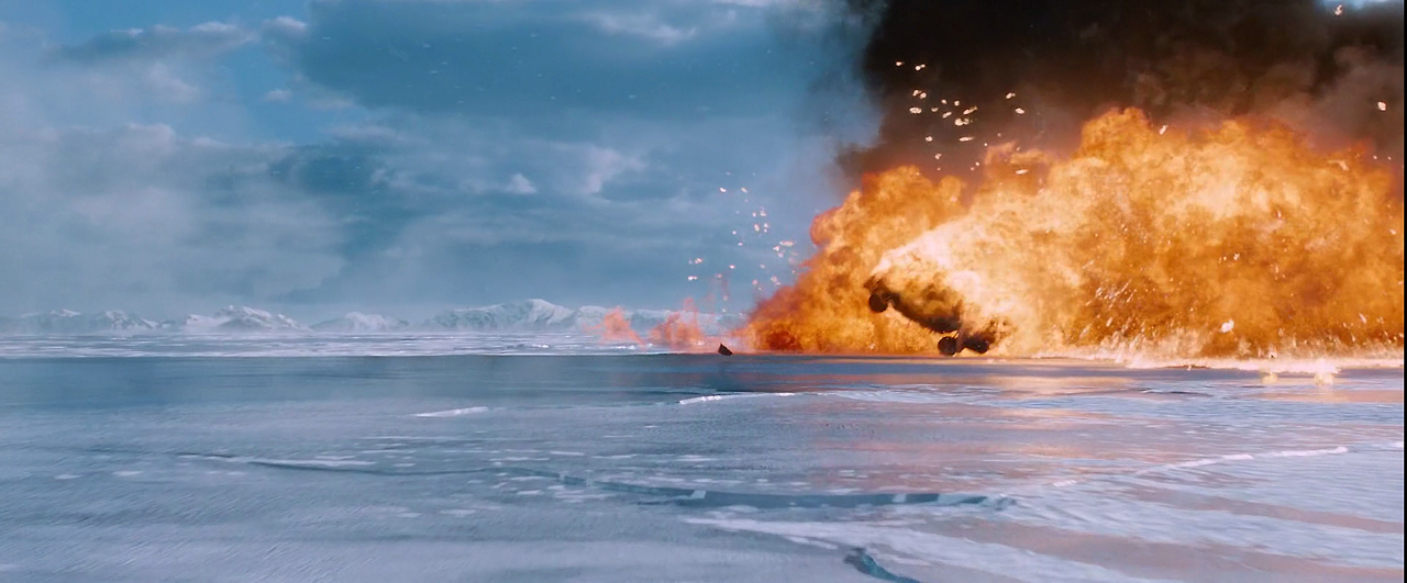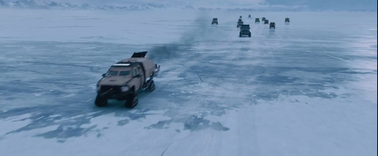 사이퍼는 정박 중인 잠수함을 해킹하여 가동해 미사일을 쏘려고 한다. 홉스 일행은 러시아군 기지에 들어가 미사일 발사를 막기 위해 힘을 기울인다. 이때부터 러시아군의 아이스 비클 및 각종 중무장 차량 핵 잠수함 사이에 화려한 액션이 벌어진다. 편에서는 차량과 탱크가 서로 액션을 벌이기도 하였지만, 여기서는 그 규모가 훨씬 웅장한 잠수함과의 카 액션이다.
