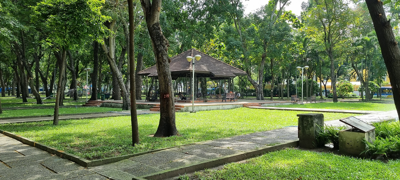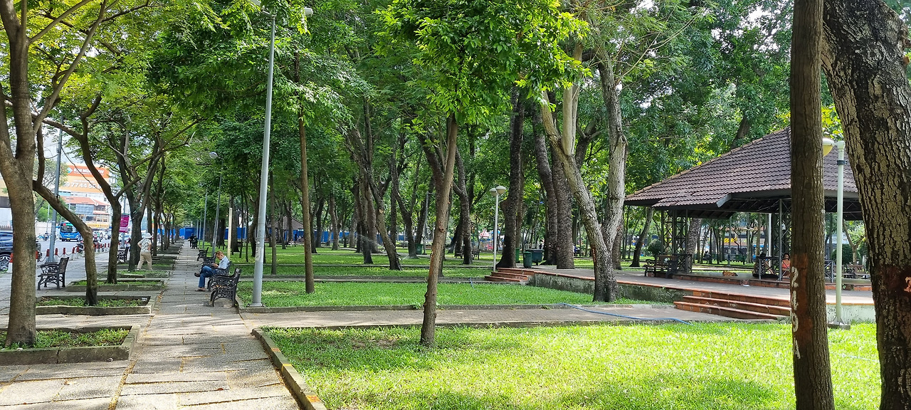 첫 번째 행선지는 통일궁이다. 구글 지도로 확인을 해보니 호텔에서 1.5킬로 정도 떨어져 있어 걸어가기로 했다. 가는 도중에 몇 개인가의 공원이 보인다. 아직은 시간이 일러 그다지 덥지 않다. 수목이 우거진 공원의 상큼한 공기가 폐를 가득 채운다.