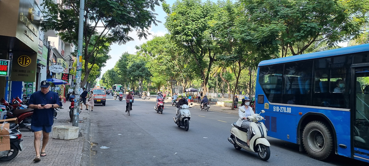 조금 큰길로 나가니 오토바이 행열이 장관이다. 길을 가득 매운 채 달려가는 오토바이 무리는 몽골 기병대를 연상시킨다. 베트남에서 제일 어려운 일이 도로를 건너는 일이다. 횡단보도가 없는 곳이 많으며, 았더라도 신호등이 있는 곳이 거의 없으므로 달려오는 차와 오토바이를 피해 길을 건넌다는 게 보통 일이 아니다. 보행자에 대한 운전자들의 배려라고는 전혀 없다.