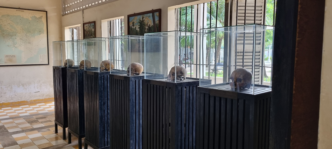 오전에 <투얼 슬랭 대학살 박물관>에 갔다. 이곳은 킬링필드 시절 프놈펜에서 가장 악명 높았던 감옥이다. S21이라 불린 이 감옥에는 수만 명의 죄 없는 사람들이 투옥되어 악랄하기 그지없는 고문을 받으며 죽어갔다. 그들은 정치범도 아니었다. 무슨 영문인지도 모르고 끌려와서는 인간의 짓이라고는 상상할 수 없는 고문을 받은 끝에 그로 인해 죽거나 처형되었다. 해설자의 말에 의하면 그들은 체포되었다는 그 자체가 죄라는 것이었다.