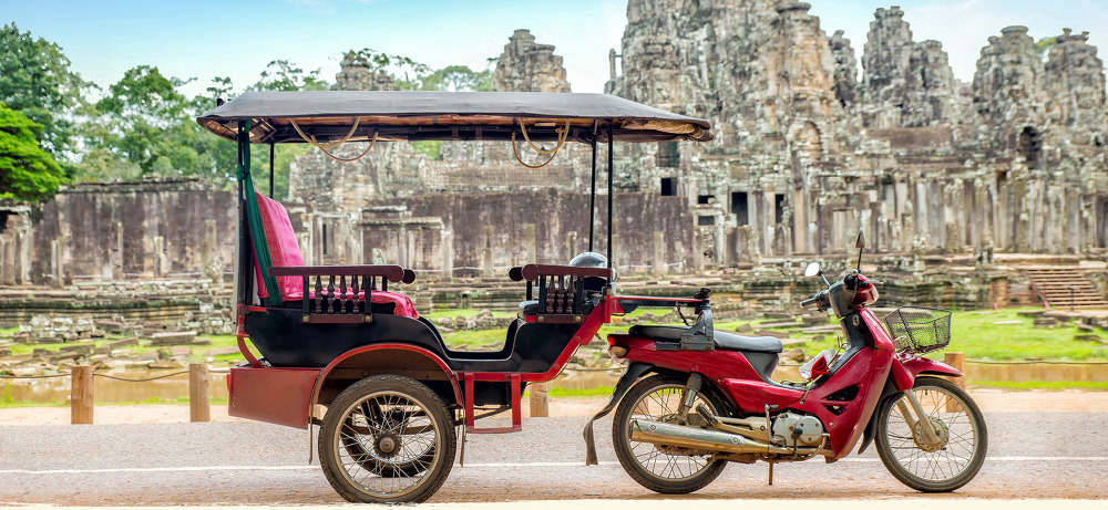 캄보디아의 시내 주요 교통 수단은 툭툭이이다. 툭툭이는 오토바이 뒤쪽에 승객을 태울 수 있는 캐빈을 단 것으로, 조잡한 형태의 삼륜차라 생각하면 될 것이다. 캄보디아 남자 직업 가운데 제일 많은 것이 툭툭이 운전사가 아닐까 생각할 정도로 시내 곳곳에 툭툭이가 많다. 길을 걸으면 툭툭이 운전사들의 호객 행위가 길을 못 걸을 정도로 성가시다. 툭툭이 가격은 정해진 것이 없어며 손님과 흥정으로 결정된다.